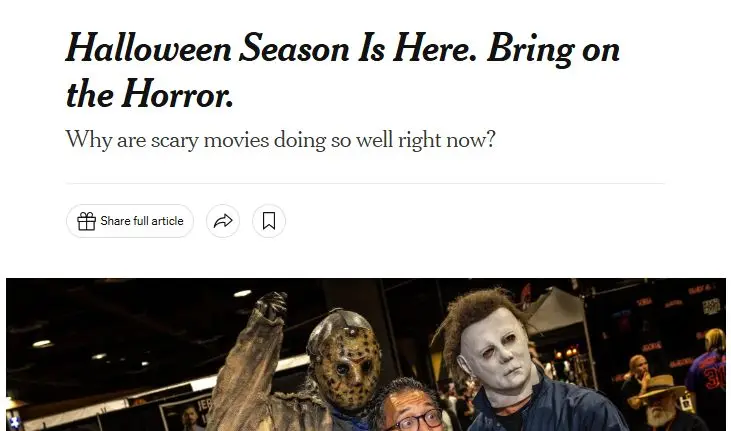 恐怖片的吸引力何在?《纽约时报》首席好莱坞记者布鲁克斯·巴恩斯分析称,核心在于集体观影体验所带来的独特乐趣。“和别人一起被吓是有趣的,”巴恩斯表示,“这些电影在拥挤黑暗的房间里播放很合适。”